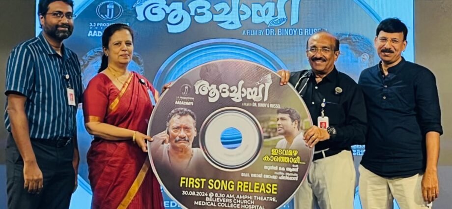 കുട്ടനാട്ടിലെ കർഷകനായ ആദച്ചായിയുടെ വ്യത്യസ്ത കഥ പറഞ്ഞ ആദച്ചായി എന്ന ചിത്രത്തിൻ്റെ ആദ്യഗാനം റിലീസായി. സുനിൽ കെ . ആനന്ദ് രചിച്ച്, ജോജി ജോഷ്വാ ഫീലിപ്പോസ്, സംഗീതവും, ആലാപനവും നിർവ്വഹിച്ച ഗാനത്തിൻ്റെ റിലീസ്, ബിലി വേഴ്സ് ചർച്ച് മെഡിക്കൽ കോളേജ് തിരുവല്ലയിൽ കഴിഞ്ഞ ദിവസം നടന്നു. ബിലിവേഴ്സ് ചർച്ച് മെഡിക്കൽ കോളേജ് പ്രിൻസിപ്പൽ ഡോ.എലിസബത്തിന്, സി ഡി മൊമൻ്റൊ നൽകി, ബിലിവേഴ്സ് ചർച്ച് മെഡിക്കൽ കോളേജ് ഡയറക്ടർ ഡോ.ജോർജ് ചാണ്ടി പ്രകാശന കർമ്മം നിർവ്വഹിച്ചു. ചടങ്ങിൽ പ്രമുഖർ പങ്കെടുത്തു.