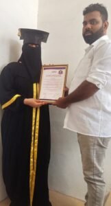 തിരുവനന്തപുരം :സേലം ഹാദിയ അറബിക് അക്കാദമിയിൽ നിന്ന് ഫസ്റ്റ് മാർക്കോടെ ബിരുദം നേടിയ നസീബ സുൽത്താനയെ AIADMK യുവജന വിഭാഗം അനുമോദിച്ചു.AIADMK (OPS വിഭാഗം )യൂത്ത് വിംഗ് സംസ്ഥാന ജനറൽ സെക്രട്ടറി മുസ്തഫ മുഹമ്മദ് ഉപഹാരം സമ്മാനിച്ചു.