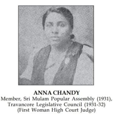 ഇന്ത്യയിലെആദ്യത്തെ വനിതാ ജഡ്ജി, തിരുവിതാംകൂറിലെ പ്രഥമ വനിതാ നിയമബിരുദധാരി, 1926-ൽ ബിരുദാനന്തര ബിരുദം നേടിയഅവർ