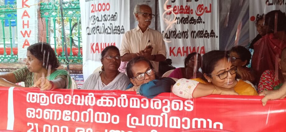 തിരുവനന്തപുരം : ആശവർക്കർമാർ നടത്തിവരുന്ന അനിശ്ചിതകാല നിരാഹാരം സമരം 14 ദിവസം പിന്നിടുന്നു. 8-ാം ദിവസം നിരാഹാരം അനുഷ്ടിച്ച പാലോട് എഫ് എച്ച് സിയിലെ എസ്.എസ് അനിതകുമാരിയെ ആശുപത്രിയിലേക്ക് മാറ്റി. ആവശ്യങ്ങൾ അംഗീകരിക്കും വരെ നിരാഹാരം കിടക്കും എന്ന് വാശിപിടിച്ച അനിതകുമാരിയെ ആരോഗ്യനില മോശമായതിനെ തുടർന്ന് നേതാക്കൾ ഇടപെട്ട് നിർബന്ധപൂർവ്വം ആശുപത്രിയിലേക്ക് മാറ്റുകയായിരുന്നു. കേരള ആശ ഹെൽത്ത് വർക്കേഴ്സ് അസോസിയേഷൻ സംസ്ഥാന കമ്മിറ്റിയംഗം തത്ത ഗോപിനാഥ് നിരാഹാര സമരം ഏറ്റെടുത്തു. കണ്ണമ്മൂല യുപിഎച്ച്സി യിലെ ബിന്ദു ബി, പള്ളിച്ചൽ എഫ് എച്ച്സിയിലെ താര.ഡി.എൽ എന്നിവരാണ് നിരാഹാര സമരം തുടരുന്ന മറ്റു രണ്ടുപേർ.