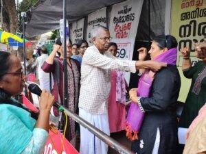 തിരുവനന്തപുരം :ആശാവർക്കർമാർ നടത്തിവരുന്ന അനിശ്ചിതകാല നിരാഹാര സമരം 21-ാം ദിവസം നിരാഹാരം ഏറ്റെടുത്ത് തൃശ്ശൂർ ജില്ലയിലെ ആശമാർ. മേലൂർ എഫ് എച്ച് സിയിലെ ആശ വർക്കർമാരായ സിന്ധു എം ടി, ബിന്ദു കെ.ബി എന്നിവരാണ് ഇന്ന് നിരാഹാര സമരം ഏറ്റെടുത്തത്. തിരുവനന്തപുരം മുക്കട പി എച്ച് സിയിലെ ആശാവർക്കർ എം ശ്രീലത, കേരള ആശ ഹെൽത്ത് വർക്കേഴ്സ് അസോസിയേഷൻ കൊല്ലം ജില്ലാ കൺവീനർ ട്വിങ്കിൾ പ്രഭാകരൻ എന്നിവരാണ് ആരോഗ്യ നില മോശമായതിനെ തുടർന്ന് നിരാഹാര സമരം അവസാനിപ്പിച്ചത്. കെ എ എച്ച് ഡബ്ല്യു എ സംസ്ഥാന കമ്മിറ്റിയംഗവും വള്ളിക്കാവ് എഫ് എച്ച് സിയിലെ ആശാ വർക്കറുമായ ബിനി സുദർശൻ നിരാഹാര സമരം തുടരുകയാണ്.