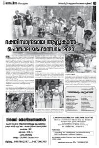 തിരുവനന്തപുരം :ചരിത്ര പ്രസിദ്ധവും,ഭക്തിസാന്ദ്രമായ ആറ്റുകാൽ പൊങ്കാല മഹോത്സവം 2023.