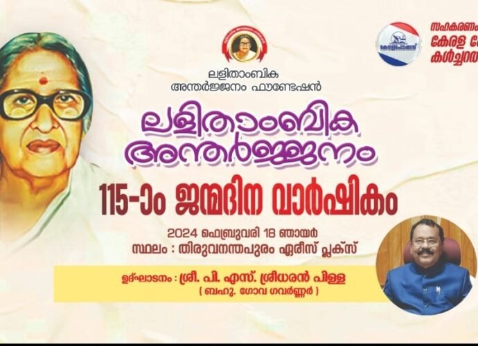 തിരുവനന്തപുരം : ലളിതാംബിക അന്തർജനം ഫൗണ്ടേഷന്റെയും കേരള ഫോക്കസ് ഇന്റർനാഷണൽ ഓർഗനൈസേഷന്റെയും സംയുക്ത ആഭിമുഖ്യത്തിൽ ലളിതാംബിക അന്തർജനത്തിന്റെ 115 -മത് ജന്മദിന വാർഷികവും കേരള ഫോക്കസിന്റെ 15 -മത് വാർഷികവും ഗോവ ഗവർണർ പി.Read More →