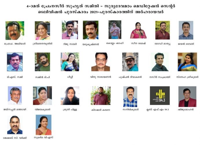 പ്രേം നസീർ ടെലിവിഷൻ പുരസ്ക്കാരങ്ങൾ പ്രഖ്യാപിച്ചു: പ്രൊഫ: അലിയാർ, ശ്രീലതാ നമ്പൂതിരി, റിജു നായർ, യദുകൃഷ്ണൻ, കൊല്ലം ഷാഫി, സീനാ രമേഷ് എന്നിവർക്ക് സമഗ്ര സംഭാവനക്കുള്ള പുരസ്ക്കാരങ്ങൾ