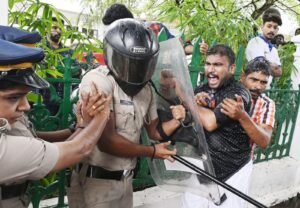 തിരുവനന്തപുരം: വെള്ളപ്പൊക്ക കെടുതിയും പകര്ച്ചവ്യാധി ഭീഷണിയും നേരിടുന്നതില് പരാജയമായ നഗരസഭാ ഭരണത്തിനെതിരെ ബിജെപി ജില്ലാ കമ്മറ്റി നടത്തിയ കോര്പ്പറേഷന് ഓഫീസ് മാര്ച്ചില് പോലീസ് അതിക്രമം. പ്രവര്ത്തകര്ക്കു നേരെ മൂന്നു തവണ പോലീസ് ജല പീരങ്കി പ്രയോഗിച്ചു. നിരവധി പ്രവര്ത്തകര്ക്ക് സാരമായ പരിക്കേറ്റു. ബിജെപി ജില്ലാ പ്രസിഡന്റ് അഡ്വ.വി.വി.രാജേഷ് മാര്ച്ച് ഉദ്ഘാടനം ചെയ്തു.