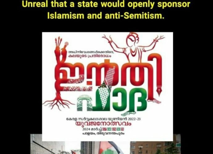 തിരുവനന്തപുരം :മാർച്ച് 7 മുതൽ ആരംഭിക്കുന്ന കേരള സർവകലാശാല യുവജനോത്സവത്തിന്റെ ലോഗോയിൽ നിന്ന് പാലസ്തീൻ- ഇസ്രയേൽ തർക്കങ്ങളെ അനുസ്മരിപ്പിക്കുന്ന ‘ഇൻതിഫാദ’ എന്ന പദം നീക്കം ചെയ്യാൻ കേരള വിസി ഡോ: മോഹനൻ കുന്നുRead More →