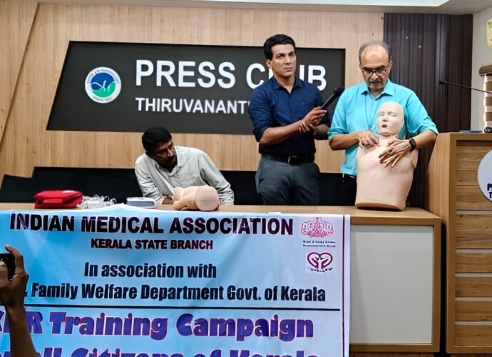 തിരുവനന്തപുരം :സംസ്ഥാന ആരോഗ്യ വകുപ്പിന്റെ ഹൃദയാഘാത പ്രഥമ ശുശ്രൂഷാ ബാധവത്ക്കരണ ക്യാമ്പയിനായ ‘ഹൃദയപൂര്‍വ’ത്തിന്റെ ഭാഗമായി മാധ്യമ പ്രവര്‍ത്തകര്‍ക്കായി ഐഎംഎയുടെ നേതൃത്വത്തില്‍ പ്രസ് ക്ലബില്‍ പരിശീലനം സംഘടിപ്പിച്ചു. ഐഎംഎ ബിഎല്‍എസ് ചെയര്‍മാന്‍ ഡോ. പ്രദീപ് കിടങ്ങൂര്‍,Read More →