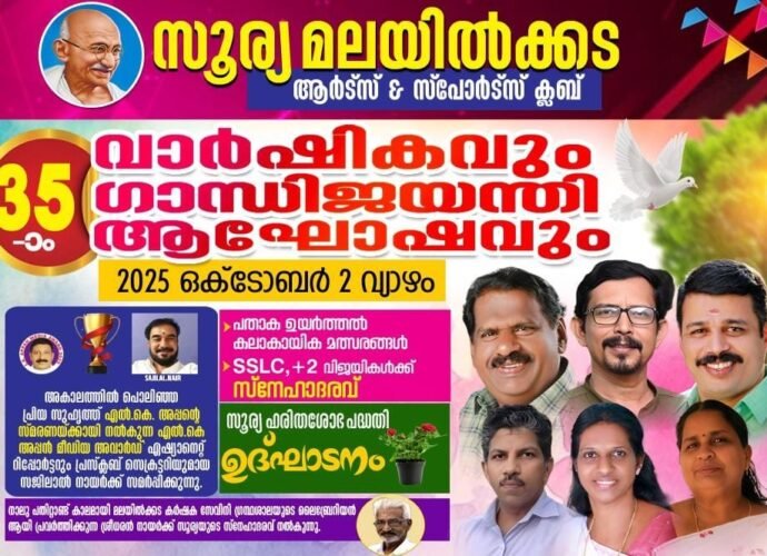 തിരുവനന്തപുരം :പത്രപ്രവർത്തകനും നാടക കലാകാരനും ക്ലബ്ബ് മുൻ പ്രസിഡൻ്റുമായിരുന്ന എൽ.കെ അപ്പൻ്റെ സ്മരണയ്ക്ക് മലയിൽക്കട സൂര്യ ആർട്ട്സ് ആൻഡ് സ്പോർട്സ് ക്ലബ്ബ് ഈ വർഷം മുതൽ നൽകി തുടങ്ങുന്ന എൽ.കെ അപ്പൻ മീഡിയ അവാർഡിന്Read More →