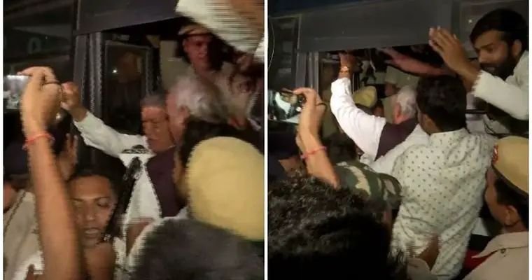 കോൺഗ്രസിന്റെ മുതിർന്ന നേതാക്കളെയും, വനിതാ എം പി മാരെയും പോലീസ് ബലം പ്രയോഗിച്ചു നീക്കുന്നു. ഡീൻ കുര്യക്കോസ്, ടി എൻ പ്രതാപൻ, ജെബി മേത്തർ തുടങ്ങിയ നേതാക്കളെ വലിച്ചിഴച്ച് വാനിൽ കയറ്റി. പക്ഷെ വാൻ മുന്നോട്ടെടുക്കാൻ സമ്മതിക്കാതെ പ്രവർത്തകർ റോഡിൽ കുത്തിയിരുന്നു.