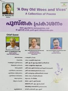 ഡോ. മാളവിക ആർ.ജെ.താൻ പിന്നിട്ട വഴികളിൽ എവിടെയോ കണ്ട കാഴ്ച്ചകളുടെ ചെറു പീലികൾ കോർത്തിണക്കിയ കവിതകൾ നാളെ പ്രകാശിതമാകുന്നു. വെറുമൊരു പുസ്തകം എന്നതിലല്ല പിതാവ് സഞ്ചരിച്ച സാമൂഹ്യ സേവനത്തിന്റെയും, കാരുണ്യ പ്രവർത്തനത്തിന്റെയും വഴിയിലൂടെ സമൂഹ സേവന മാതൃക സമ്മാനിക്കുകയാണ് ഡോ. മാളവിക ചെയ്യുന്നത്.
