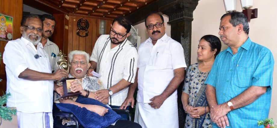 തിരുവനന്തപുരം: താരസംഘടന അമ്മയുടെ പ്രഥമ സെക്രട്ടറിയും ഗാന്ധിഭവന് കുടുംബാംഗവുമായിരുന്ന അന്തരിച്ച ചലച്ചിത്രതാരം ടി.പി. മാധവന്റെ ഒന്നാം ചരമവാര്ഷികത്തോടനുബന്ധിച്ച് ചലച്ചിത്രലോകത്തെ സമഗ്രസംഭാവനകള്ക്കായി ഗാന്ധിഭവന് ഏര്പ്പെടുത്തിയ പ്രഥമ ഗാന്ധിഭവന്-ടി.പി. മാധവന് നാഷണല് അവാര്ഡ് ഇന്ന് (04.01.2026) പ്രശസ്ത നടന് ജഗതി ശ്രീകുമാറിന് സമ്മാനിച്ചു. 25000/- രൂപയും ഫലകവും അടങ്ങുന്ന അവാര്ഡ് ഗാന്ധിഭവന് സ്ഥാപകനും മാനേജിംഗ് ട്രസ്റ്റിയുമായ പുനലൂര് സോമരാജന് ജഗതി ശ്രീകുമാറിന്റെ തിരുവനന്തപുരത്തെ വസതിയിലെത്തി സമ്മാനിച്ചു. ജഗതി ശ്രീകുമാറിന്റെ 75-ാം ജന്മദിനം കേക്ക് മുറിച്ച് കുടുംബാംഗങ്ങളോടൊപ്പം ആഘോഷിക്കുകയും ചെയ്തു. ഗാന്ധിഭവന് ഭാരവാഹികളായ ജി. ഭുവനചന്ദ്രന്, വിന്സെന്റ് ഡാനിയേല്, മണക്കാട് രാമചന്ദ്രന് എന്നിവരും ജഗതി ശ്രീകുമാറിന്റെ പത്നി ശോഭ, മക്കളായ രാജ്കുമാര്, പാര്വ്വതി എന്നിവരും ചടങ്ങില് സംബന്ധിച്ചു.