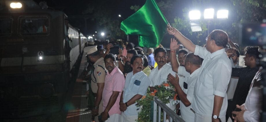 ചെന്നൈ എഗ്മോര്-ഗുരുവായൂര് എക്സ്പ്രസിന് കടയ്ക്കാവൂര് സ്റ്റേഷനില് സ്റ്റോപ്പ് അനുവദിച്ചതിന്റെ ഫ്ലാഗ് ഓഫ് നിർവഹിച്ച് സംസാരിക്കുകയായിരുന്നു വി.മുരളീധരൻ