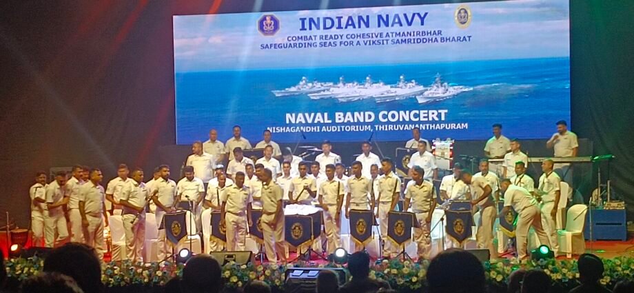 തിരുവനന്തപുരം :നാവിക ദിനാഘോഷങ്ങളുടെ ഭാഗമായി തിരുവനന്തപുരം നിശാഗന്ധി ഓഡിറ്റോറിയത്തിൽ ഇന്ത്യൻ നാവികസേനാ ബാൻഡ് അവതരിപ്പിച്ച സംഗീത വിരുന്ന് വിസ്മയമായി. ദക്ഷിണ നാവിക കമാൻഡിന്റെ 55 അംഗ ഇന്ത്യൻ നാവിക ബാൻഡ് ടീമിൻ്റെ സംഗീത മികവ് ഈ പരിപാടിയിൽ പ്രതിഫലിച്ചു. ശക്തവും വൈവിധ്യപൂർണ്ണവുമായ ഒരു ശേഖരം 3,000-ത്തിലധികം പേർ പങ്കെടുത്ത സദസ്സിനെ ആകർഷിച്ചു.