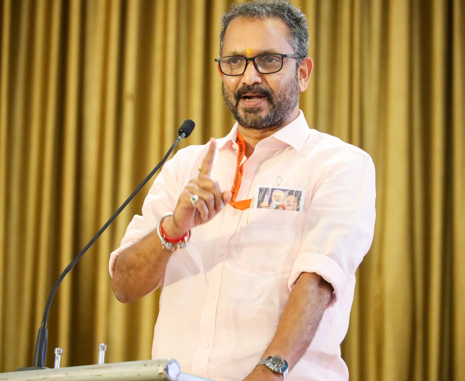 എൽഡിഎഫ് അല്ലെങ്കിൽ യുഡിഎഫ് എന്ന സ്ഥിതി കേരളത്തിൽ മാറി. മൂന്നാമതൊരു ശക്തി കൂടി വന്നു. ഇത് കേരളമാണ് ബിജെപിക്ക് ബാലികേറാമലയാണെന്ന് മുഖ്യമന്ത്രി പറഞ്ഞു. എന്നാൽ ആ കേരളത്തിൽ ബിജെപി ഒന്നാമതുമെത്തി രണ്ടാമതും എത്തി. എൽഡിഎഫിനും ബിജെപിക്കും ഒരേ സീറ്റാണ് കിട്ടിയത്. അധികം വൈകാതെ ബിജെപി കേരളം ഭരിക്കും. മാരാർജി മുതലുള്ള നേതാക്കൾ കേരളം മുഴുവൻ നടന്ന് പ്രവർത്തിച്ചതാണ് ഈ വിജയത്തിൻ്റെ അടിത്തറ. തനിക്ക് മുമ്പേ പ്രവർത്തിച്ച എല്ലാ സംസ്ഥാന അദ്ധ്യക്ഷൻമാർക്കുമാണ് വിജയത്തിൻ്റെ ക്രെഡിറ്റ്. ബലിദാനികളുടെ പ്രസ്ഥാനമാണ് ബിജെപി. വിശ്വസിച്ച ആദർശത്തിന് വേണ്ടി പ്രവർത്തിക്കാനിറങ്ങിയതിൻ്റെ പേരിൽ നൂറുകണക്കിന് പ്രവർത്തകർക്ക് ജീവൻ നഷ്ടപ്പെട്ടു. പ്രധാനമന്ത്രിയും ദേശീയ നേതാക്കളും എപ്പോഴും കേരളത്തിൻ്റെ നേട്ടങ്ങളെ കുറിച്ച് പറയാറുണ്ട്. അത് ഇവിടുത്തെ പ്രവർത്തകരുടെ ത്യാഗപൂർണമായ പ്രവർത്തനത്തിനുള്ള അംഗീകാരമാണ്.