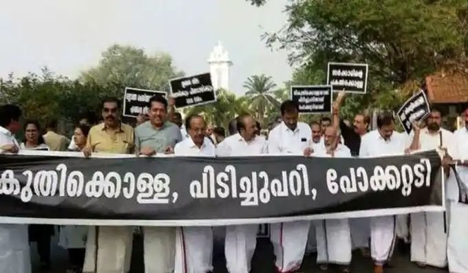 രാവിലെ നിയമസഭ സമ്മേളനത്തിന് മുൻപായി പ്രതിപക്ഷ നേതാവ് വി ഡി സതീശന്റെ നേതൃത്വത്തിൽ പ്രതിഷേധ നടത്തം സംഘടിപ്പിച്ചു . നികുതിക്കൊള്ള, പിടിച്ചുപറി, പോക്കറ്റടി എന്നെഴുതിയ ബാനറുമായി എംഎല്എ ഹോസ്റ്റല് മുതല് നിയമസഭ വരെയാണ് എംഎല്എമാര് സമരം ചെയ്തത്.