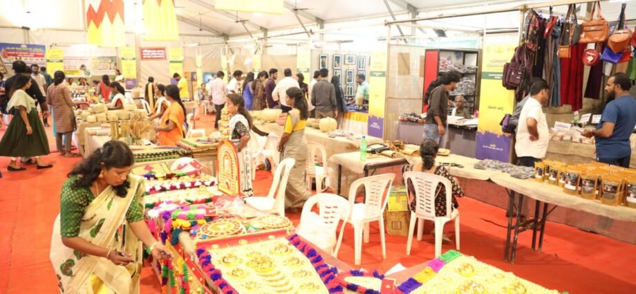തിരുവനന്തപുരം :കേരളത്തിന്റെ തനത് സംസ്കാരം വിളിച്ചോതുന്ന പരമ്പരാഗത ഉത്പന്നങ്ങളുടെ വൈവിധ്യ കലവറയാണ് എത്നിക് ട്രേഡ് ഫെയര്.കേരളീയത്തിന്റെ ഭാഗമായി യൂണിവേഴ്സിറ്റി കോളജില് ഒരുക്കിയ എത്നിക് ട്രേഡ് ഫെയറില് ഭക്ഷ്യയുത്പന്നങ്ങള്, ബാഗുകള്, സോപ്പ്, തുണിത്തരങ്ങള്, വന ഉത്പന്നങ്ങള്, കരകൗശല ഉത്പന്നങ്ങള്, കരിമ്പ് -മുള ഉല്പ്പന്നങ്ങള്, എല്ഇഡി ബള്ബ്, മറയൂര് ശര്ക്കര, മഞ്ഞള്, കാപ്പി, ഗ്രാമ്പൂ, കുരുമുളക്, കശുവണ്ടി ഉത്പന്നങ്ങള് കളിമണ്ണാഭരണങ്ങള്, ഗോത്ര പെയിന്റിങ്ങുകള് തുടങ്ങി നിരവധി ഉത്പന്നങ്ങളും കാഴ്ചകളുമാണ് കാത്തിരിക്കുന്നത്. കാസര്ഗോഡ് മുതല് തിരുവനന്തപുരം വരെയുള്ള ജില്ലകളിലെ പട്ടികവര്ഗ വിഭാഗക്കാരുടെ ഉത്പന്നങ്ങളാണ് ഇവിടെ പ്രദര്ശനത്തിനും വില്പ്പനയ്ക്കുമായി എത്തിച്ചിരിക്കുന്നത്.