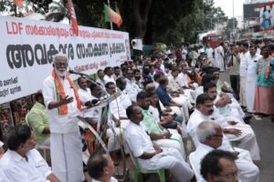 അയ്യങ്കാളിയെപ്പോലെയും കണ്ടന് കുമാരനെപ്പോലെയും കേരളത്തില് സമഗ്ര സാമൂഹ്യ പരിവര്ത്തനത്തിന് നേതൃത്വം കൊടുത്ത പട്ടികജാതി വിഭാഗത്തിലെ സഹോദരങ്ങള് നീതി നിഷേധിക്കപ്പെട്ടവരായി കഴിയുകയാണ്. കമ്മ്യൂണിസ്റ്റ് ഭരണം നിലനില്ക്കുന്ന കേരളത്തില് ഈ സഹോദരങ്ങള് എന്തുകൊണ്ട് സാമൂഹ്യനീതി നിഷേധിക്കപ്പെട്ടവരായി കഴിയേണ്ടി വന്നു എന്നത് ചിന്തിക്കണം. ചീഞ്ഞുനാറിയ ഒരു സാമൂഹ്യ വ്യവസ്ഥിതിയുടെ വിഴുപ്പ് ഭാണ്ഡവും പേറിനില്ക്കുന്ന ഭൂപരിഷ്ക്കരണ നിയമം എന്തുകൊണ്ട് പരിഷ്കരിക്കുന്നില്ല? കേരളത്തിലെ പട്ടികജാതി സഹോദരങ്ങള് ആവശ്യപ്പെടുന്നത് ഒരു രണ്ടാം ഭൂപരിഷ്കരണ നിയമമാണ്. നിരവധി കമ്യൂണിസ്റ്റ് സര്ക്കാരുകള് ഇവിടെ വന്നിട്ടും, മനുഷ്യസ്നേഹികളെന്നും അധഃസ്ഥിത ജനവിഭാഗങ്ങളുടെ മുഴുവന് പ്രയോക്താക്കളെന്നും അവകാശ സംരക്ഷകരെന്നും പറയുന്ന കമ്മ്യൂണിസ്റ്റ് നേതാക്കൾ പട്ടികജാതി ജനവിഭാഗത്തിന് വേണ്ടി എന്തു ചെയ്തു. മനുഷ്യാവകാശ ധ്വംസനമാണ് കേരളത്തിൽ നടക്കുന്നത്. പട്ടികജാതി മോര്ച്ച നടത്തുന്ന ഈ സമരം അന്നത്തിനും വെള്ളത്തിനും മണ്ണിനും വേണ്ടിയാണ്. അടിസ്ഥാനപരമായ ആവശ്യങ്ങള് നിറവേറ്റാന് സര്ക്കാരിന് കഴിയുന്നില്ലെങ്കില് നിങ്ങള് കസേരയില് നിന്ന് ഇറങ്ങിപ്പോകണം.
