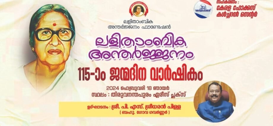 തിരുവനന്തപുരം : ലളിതാംബിക അന്തർജനം ഫൗണ്ടേഷന്റെയും കേരള ഫോക്കസ് ഇന്റർനാഷണൽ ഓർഗനൈസേഷന്റെയും സംയുക്ത ആഭിമുഖ്യത്തിൽ ലളിതാംബിക അന്തർജനത്തിന്റെ 115 -മത് ജന്മദിന വാർഷികവും കേരള ഫോക്കസിന്റെ 15 -മത് വാർഷികവും ഗോവ ഗവർണർ പി. എസ്. ശ്രീധരൻപിള്ള ഉദ്ഘാടനം ചെയ്തു.