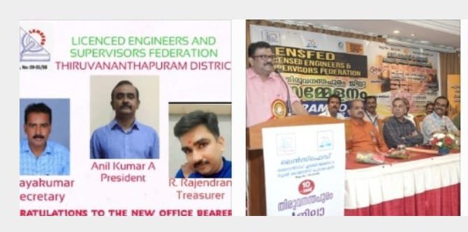 തിരുവനന്തപുരം:അംഗീകൃത എഞ്ചിനീയർ മാരുടെയും സൂപ്പർവൈസർമാരു ടെയും സംഘടനയായ ലെൻസ് ഫെഡിന്റെ ജില്ലാ സമ്മേളനം നടന്നു. പി.എം.ജിയിലെ ഹോട്ടൽ പ്രശാന്തിൽ നടന്നസമ്മേളനംഅഡ്വ.ഐ.ബി.സതീഷ് എം.എൽ.എ ഉദ്ഘാടനം ചെയ്തു. ജില്ലാ പ്രസിഡന്റ് അനിൽകുമാർ എ അധ്യക്ഷത വഹിച്ചു.ലെൻസ് ഫെഡ് സംസ്ഥാന പ്രസിഡന്റ് വിനോദ് കുമാർ സി.എസ്,സെക്രട്ടറി മനോജ് എം, ട്രഷറർ ഷാജി.പി. ബി, ജില്ലാ സെക്രട്ടറി വിജയകുമാർ എൻ,ട്രഷറർ ജയപ്രകാശ് വി തുടങ്ങിയവർ പ്രസംഗിച്ചു.പുതിയ ജില്ലാ ഭാരവാഹിക ളായി അനിൽകുമാർ എ (പ്രസിഡന്റ്) വിജയകുമാർ(സെക്രട്ടറി)ആർ.രാജേന്ദ്രൻ (ട്രഷറർ) എന്നിവരെ സമ്മേളനം തെരഞ്ഞെടുത്തു.