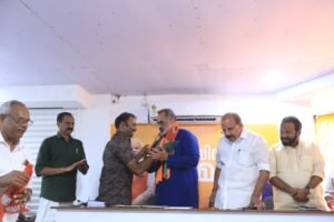 വികസിത നേമം ഹെഡ് ക്വാർട്ടേഴ്സിൽ നടന്ന ചടങ്ങിൽ ബി ജെ പി സംസ്ഥാന പ്രസിഡന്റ് രാജീവ് ചന്ദ്രശേഖർ NDP(S) സംസ്ഥാന പ്രസിഡന്റ് കാഞ്ഞിക്കൽ രാമചന്ദ്രൻ നായർ, വർക്കിംഗ് പ്രസിഡന്റ് ജി അനിൽ കുമാറിനെയും ഷാൾ അണിയിച്ചു സ്വീകരിച്ചു.