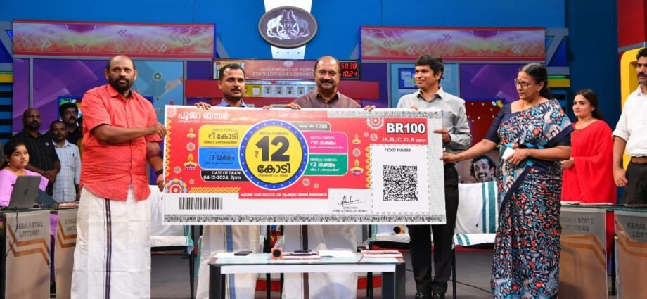 പുതുതായി റിലീസ് ചെയ്ത പൂജാ ബമ്പര് ഭാഗ്യക്കുറിയും (BR 100) ആകര്ഷമായ സമ്മാനഘടനയുമായാണെത്തുന്നത്. 12 കോടി രൂപയാണ് പൂജ ബമ്പര് ഭാഗ്യക്കുറിയുടെ ഒന്നാം സമ്മാനം. ഒരു കോടി രൂപ വീതം അഞ്ച് പരമ്പരകള്ക്കായി നല്കുന്ന രണ്ടാം സമ്മാനമാണ് വിപണിയിലിറക്കുന്ന പൂജാ ബമ്പറിന്റെ മറ്റൊരു സവിശേഷത. മൂന്നാം സമ്മാനമായി 10 ലക്ഷം രൂപയും (ഓരോ പരമ്പരകള്ക്കും രണ്ടു വീതം), നാലാം സമ്മാനമായി മൂന്നു ലക്ഷം രൂപയും(അഞ്ചു പരമ്പരകള്ക്ക്), അഞ്ചാം സമ്മാനമായി രണ്ടു ലക്ഷം രൂപയും(അഞ്ചു പരമ്പരകള്ക്ക്) ലഭിക്കും. 5000, 1000, 500, 300 രൂപയുടെ മറ്റ് നിരവധി സമ്മാനങ്ങളുമുണ്ട്. ഡിസംബര് 04-ന് നറുക്കെടുക്കുന്ന പൂജാ ബമ്പറിന്റെ ടിക്കറ്റ് വില 300 രൂപയാണ്. പൂജ ബമ്പര് നാളെ മുതല് വിപണിയില് ലഭ്യമാകും.