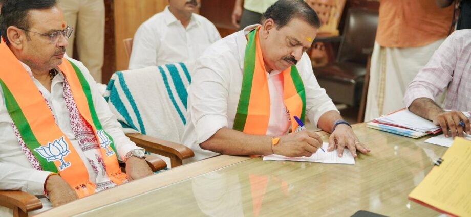 കാട്ടാക്കട :: നൂറുകണക്കിന് പ്രവർത്തകരുടെ അകമ്പടിയോടുകൂടിയാണ് പ്രകടനമായിഎത്തിയാണ് കാട്ടാക്കട നിയോജകമണ്ഡലത്തിലെ എൻഡിഎ സ്ഥാനാർഥി പി കെ കൃഷ്ണദാസ് നാമനിർദ്ദേശപത്രിക സമർപ്പിച്ചത്. വരണാധികാരിയായ വെള്ളയമ്പലം ജില്ല വ്യവസായ കേന്ദ്രത്തിലെ മേധാവിക്ക് മുമ്പാകെയാണ് പത്രിക സമർപ്പിച്ചത്. പത്രിക സമർപ്പണത്തിൽ സ്ഥാനാർത്ഥിക്കൊപ്പം രാജസ്ഥാൻ മുഖ്യമന്ത്രി ഭജൻ ലാൽ ശർമ്മ, മഹാരാഷ്ട്ര എംപി ഭാഗ്വത് കിഷൻറാവു കരാഡ്, വൈസ് ചെയർമാൻ വിഷ്ണുപുരം ചന്ദ്രശേഖരൻ,
