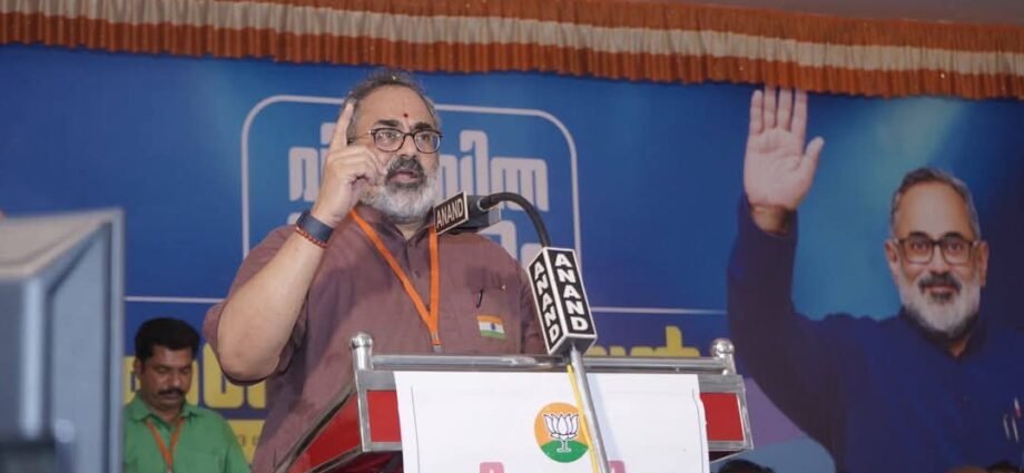 വിഴിഞ്ഞം വേദിയിലെ തന്റെ സാന്നിധ്യത്തിൽ കമ്യൂണിസ്റ്റ് രാജവംശത്തിലെ മരുമകന് സങ്കടമെന്ന് പരിഹസിച്ച് രാജീവ് ചന്ദ്രശേഖർ