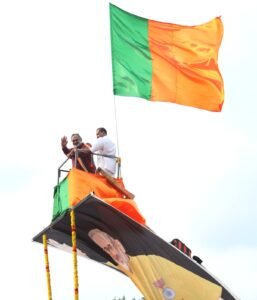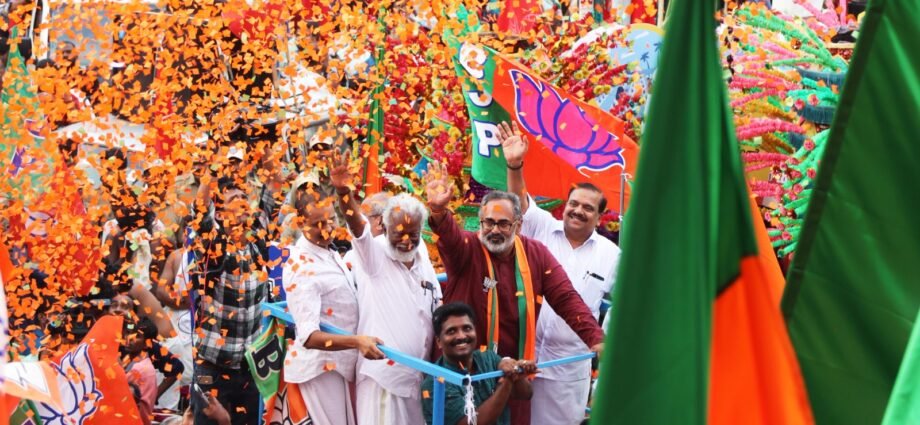 രാജീവ് ചന്ദ്രശേഖറിൻ്റെ ചിത്രമടങ്ങിയ കൂറ്റൻ ഫ്ലക്സ് പതിച്ച ക്രയ്നിൽ കയറിയ സ്ഥാനാർത്ഥി പൂക്കൾ വിതറി ജനങ്ങളെ അഭിവാദ്യം ചെയ്തു. സ്ഥാനാർത്ഥിക്കൊപ്പം ജില്ലാ പ്രസിഡൻ്റ് വിവി. രാജേഷ്, മുതിർന്ന നേതാവ് ഒ രാജഗോപാൽ, ദേശീയ നിർവാഹക സമിതി അംഗങ്ങളായ കുമ്മനം രാജശേഖരൻ, പി കെ കൃഷ്ണദാസ്, വക്താവ് സന്ദീപ് വാചസ്പതി എന്നിവരും പ്രവർത്തകർക്ക് ആവേശം പകരാനെത്തിയിരുന്നു.