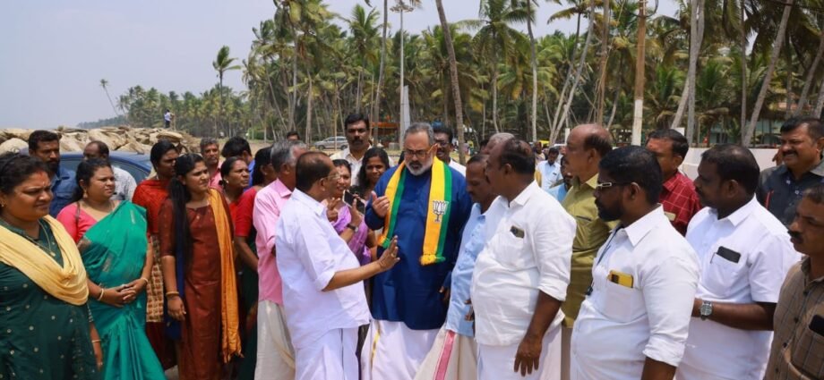 പാച്ചലൂര് പനത്തുറ സുബ്രമണ്യ ക്ഷേത്ര ദര്ശനം നടത്തിയ ശേഷമാണ് അദ്ദേഹം തീരദേശവാസികളുമായി സംവദിച്ചത്. ഉച്ചയ്ക്ക് 12 ന് ക്ഷേത്ര ദര്ശനം നടത്താനെത്തിയ അദ്ദേഹത്തെ തീരദേശ വാസികളും ഭക്തരും പാച്ചല്ലൂരിലെ ബി.ജെ.പി പ്രവര്ത്തകരും ചേര്ന്ന് സ്വീകരിച്ചു. തീരദേശ വാസികള് അഭിമുഖീകരിക്കുന്ന വിവിധ പ്രശ്നങ്ങള് സ്ഥാനാര്ത്ഥിക്ക് മുന്നില് നിരത്തി. ക്ഷേത്രഭാരവാഹികളുമായും സ്ഥാനാര്ത്ഥി ചര്ച്ച നടത്തി.