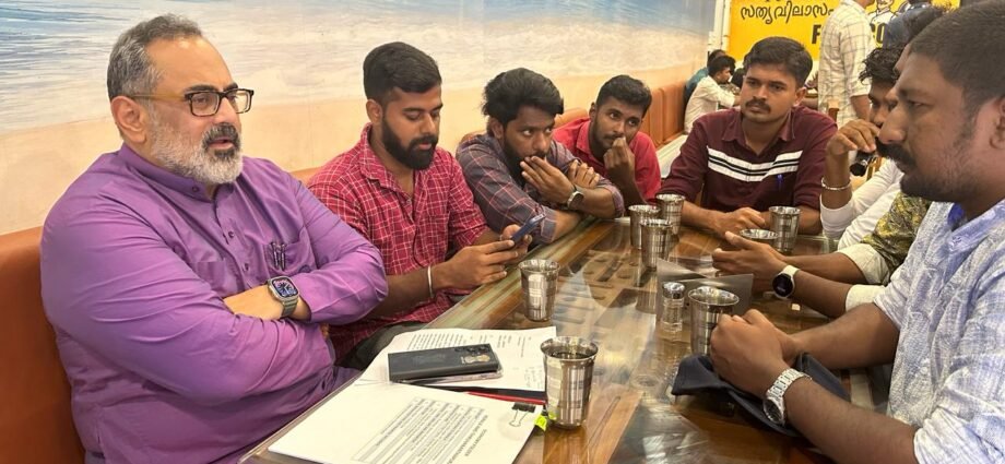 പ്രൊഫഷണൽ ഡിഗ്രിയുള്ളവർ പോലും ജോലിക്കായി റോഡിലൂടെ മുട്ടിലിഴയേണ്ടി വരുന്നത് വേദനാജനകമാണെന്ന് അദ്ദേഹം പറഞ്ഞു. നിയമനം നടത്തണം എന്നാവശ്യപ്പെട്ട് സെക്രട്ടേറിയറ്റ് നടയിൽ കഴിഞ്ഞ 34 ദിവസങ്ങളായി സമരമിരിക്കുന്ന സി.പി.ഒ. റാങ്ക് ഹോൾഡേഴ്സിനോട് സംസാരിക്കുകയായിരുന്നു അദ്ദേഹം. സത്യവിലാസം ഹോട്ടലിൽ പ്രാതൽ കഴിക്കാനെത്തിയപ്പോഴാണ് റാങ്ക് ഹോൾഡേഴ്സ് രാജീവ് ചന്ദ്രശേഖറിനെ കാണാൻ എത്തിയത്. കേരള സർക്കാരിൽ പ്രതീക്ഷ നഷ്ടപ്പെട്ട യുവാക്കൾക്ക് ഒരു കാര്യം അദ്ദേഹം ഉറപ്പുകൊടുത്തു: പ്രധാനമന്ത്രി നരേന്ദ്ര മോദി ജിയുടെ ഇന്ത്യയിൽ കേരളത്തിലെ യുവജനങ്ങൾ തൊഴിലില്ലാതെ സമരമിരിക്കേണ്ടി വരില്ല. പിൻവാതിലിലൂടെയല്ലാ മുൻവാതിലിലൂടെ തന്നെ അർഹരായ എല്ലാവർക്കും തൊഴിൽ ലഭിക്കും. ഇതാണ് മോദിയുടെ ഗാരൻ്റിയെന്നും രാജീവ് ചന്ദ്രശേഖർ പറഞ്ഞു.