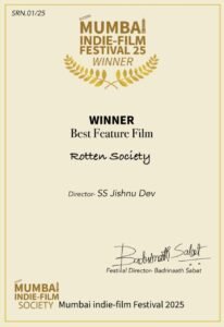 എസ് എസ് ജിഷ്ണുദേവ് രചന നിർവ്വഹിച്ച് സംവിധാനം ചെയ്ത മലയാളചിത്രം റോട്ടൻ സൊസൈറ്റി, ആറാമത് മുംബെ ഇൻഡി ഫിലിം ഫെസ്റ്റിവലിൽ മികച്ച ചിത്രമായി തെരഞ്ഞെടുക്കപ്പെട്ടു.