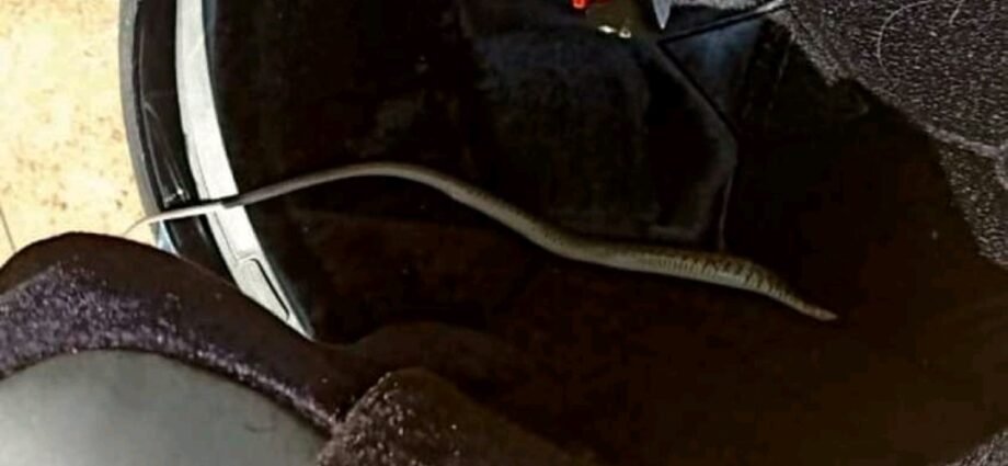 തൃശ്ശൂർ : ഹെല്മറ്റിനകത്ത് പാമ്പുമായി രണ്ട് മണിക്കൂറോളം കറങ്ങി നടന്ന് യുവാവ്. കോട്ടപ്പടി സ്വദേശിയായ യുവാവാണ് തലയില് വച്ച ഹെല്മറ്റിനകത്ത് പാമ്പുണ്ടെന്ന് അറിയാതെ ബൈക്കില് കറങ്ങിയത്.തിങ്കളാഴ്ച രാത്രിയാണ് സംഭവം നടന്നിരിക്കുന്നത്.