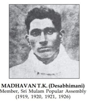 1885 സെപ്റ്റംബർ 2 ന് മാവേലിക്കര കണ്ണമംഗലത്ത് ഉമ്മിണിയമ്മ- കേശവൻ ചാന്നാർ എന്നിവരുടെ മകനായി ജനിച്ചു.ചെറുപ്പത്തിൽ തന്നെ നല്ല ബുദ്ധിശക്തിയും സംഘടനാ സാമർത്ഥ്യവും രാഷ്ട്രീയ ലക്ഷ്യവുമുണ്ടായിരുന്ന അദ്ദേഹം 1911-ൽ ശ്രീനാരായണ ഗുരുവുമായി പരിചയപ്പെട്ടു. തുടർന്ന് ആലുവയിൽ ഒരു സംസ്കൃതപഠനശാല സ്ഥാപിക്കുന്നതിനായി ധനം ശേഖരിക്കാൻ നടത്തിയ യാത്രയിലെ മുഖ്യ പ്രചാരകനും പ്രസംഗകനും ടി.കെ മാധവനായിരുന്നു.ഇക്കാലത്താണ് സ്വസമുദായത്തിനു വേണ്ടി ഒരു പത്രം അനിവാര്യം എന്ന് അദ്ദേഹത്തിന് തോന്നി .തുടർന്ന് 1915-ൽ ദേശാഭിമാനി പത്രം സ്ഥാപിച്ചു.1919, 1920, 1921, 1926 എന്നീ വർഷങ്ങളിൽ ശ്രീമൂലം പ്രജാസഭയിലേയ്ക്ക് തിരഞ്ഞെടുത്തു. സഭയിൽ അദ്ദേഹം പൗരസമത്വത്തിനു വിലങ്ങുതടിയായിരുന്ന തീണ്ടൽ, തൊട്ടുകൂടായ്മ എന്നീ ദുരാചാരങ്ങളെ ഹിന്ദുമതത്തിൽ നിന്ന് ഇല്ലായ്മ ചെയ്യുന്നതിനായി ക്ഷേത്രപ്രവേശന വാദം ഉയർത്തിപ്പിടിച്ചു.1921-ൽ മഹാത്മാഗാന്ധിയും ടി.കെ.മാധവനും തിരുനെൽവേലിയിൽ വെച്ച് കണ്ടുമുട്ടി. കേരളത്തിലെ ക്ഷേത്രപ്രവേശനവുമായി ബന്ധപ്പെട്ട് സംഭാഷണം നടത്തി.1923-ലെ കാക്കി നടകോൺഗ്രസ് സമ്മേളനത്തിൽ പങ്കെടുത്ത് അയിത്തത്തിനെതിരെ ടി.കെ.മാധവൻപ്രമേയം അവതരിപ്പിച്ചു.1924 മാർച്ച് 30 മുതൽ 603 ദിവസം നീണ്ടു നിന്ന വൈക്കം സത്യാഗ്രഹത്തെ തുടർന്ന് 1928-ൽ തിരുവിതാംകൂർ ഗവൺമെൻ്റ് ക്ഷേത്രങ്ങളുടെ പരിസരത്തുള്ള റോഡുകൾ അവർണ്ണർക്കായി തുറന്നു കൊടുത്തു.ക്ഷേത്രപ്രവേശന പ്രസ്ഥാനങ്ങളുടെ പിതാവ് എന്ന നിലയിലാണ് അദ്ദേഹത്തിന് കേരള ചരിത്രത്തിൽ അവിസ്മരണിയ സ്ഥാനം നേടിക്കൊടുത്തത്.1927 -ൽ എസ്.എൻ.ഡി.പി യോഗം സെക്രട്ടറിയായി.ക്ഷേത്രപ്രവേശന വാദത്തിൻ്റെ ഉദ്ദേശ്യത്തെക്കുറിച്ച് വ്യക്തമാക്കാൻ ഇദ്ദേഹം രചിച്ച കൃതിയാണ് .ക്ഷേത്രപ്രവേശനം, ഡോ. പല്പു ( ജീവചരിത്രം) ,ഹരിദാസി (വിവർത്തനം) ,എൻ്റെ ജയിൽവാസം .എന്നിവ അദ്ദേഹത്തിൻ്റെ കൃതികൾ ആണ്. സാമൂഹ്യ സമത്വത്തിനു വേണ്ടി എന്നെന്നും നിലകൊണ്ട ആ മഹാനായ കർമ്മയോഗി 1930 ഏപ്രിൽ 27-ാം തീയതി അന്തരിച്ചു.നാരായണി അമ്മ ഭാര്യ.. 2 മക്കൾ.
