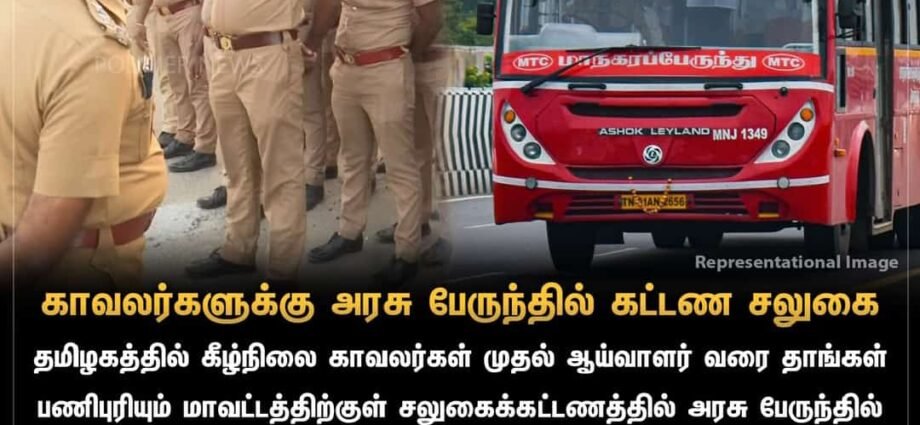 ചെന്നൈ :തമിഴ്നാട് സ്റ്റേറ്റ് പോലീസിലെ കോൺസ്റ്റബിൾ മുതൽ സബ് ഇൻസ്പെക്ടർ വരെയുള്ള റാങ്കുകാർക്ക് അവരവരുടെ ജില്ലക്കുള്ളിൽ സൗജന്യ യാത്ര ചെയ്യുന്നതിന് സ്മാർട്ട് കാർഡ് ഉടൻ വിതരണം ചെയ്യാൻ സംസ്ഥാന ആഭ്യന്തര വകുപ്പിൻ്റെ ഉത്തരവ്, ഉടൻ എല്ലാ സേനാംഗങ്ങളും സമാർട്ട് കാർഡിനാവശ്യമായ വിവരങ്ങൾ നൽകാൻ തമിഴ്നാട് DGP യുടെ നിർദ്ദേശം….. കുറച്ചുനാൾ മുൻപ് തമിഴ്നാട് ട്രാൻസ്പോർട്ട് ബസിലെ കണ്ടക്ടർ ഡ്യൂട്ടി ക്കായി യൂണിഫോമിൽ പോകുകയായിരുന്ന കോൺസ്റ്റബിളിനോട് പൈസ ആവശ്യപ്പെടുന്നതും പോലീസുകാരൻ നൽകാതിരുന്നതും ഏറെ വൈറലായിരുന്നു, കണ്ടക്ടറുടെ ശാഠ്യം മൂലം മറ്റു യാത്രക്കാർ പണം നല്കിയാണ് ബസ് യാത്ര തുടർന്നത്. സംഭവം കണ്ടക്ടർ തന്നെയാണ് വാട്സാപ്പ് വഴി പ്രചരിപിച്ചത് ഇതിനെ തുടർന്ന് ഇയാൾ സസ്പെൻഷനിലാണ്. ഡ്യൂട്ടി ക്കായി സഞ്ചരിക്കുന്ന പോലീസ് ഉദ്യോഗസ്ഥർ പണം നൽകേണ്ടതില്ല എന്ന തമിഴ്നാട് മുഖ്യമന്ത്രി ശ്രീ. MK സ്റ്റാലിൻ്റെ വാക്കിൽ വിശ്വസിച്ചാണ് താൻ അങ്ങനെ ചെയ്തതെന്ന് പോലീസുകാരൻ വിശദീകരിച്ചിരുന്നു. അതിൻ്റെയടിസ്ഥാനത്തിലാണ് കണ്ടക്ടർക്ക് സസ്പെൻഷനും ലഭിച്ചത്. പോലീസിനെ സമൂഹമാധ്യമങ്ങളിൽ അപമാനിച്ചെന്ന കേസും പ്രസ്തുത കണ്ടക്ടർ നേരിടുകയാണ്. സംഭവത്തെ തുടർന്ന് പോലീസ് തമിഴ്നാട്ടിലെമ്പാടും സർക്കാർ വാഹനങ്ങളുടെ നിയമലംഘനങ്ങൾ പിടികൂടി രണ്ട് കോടിയോളം രൂപ പിഴ ചുമത്തിയതും മുഖ്യമന്ത്രി തന്നെ നേരിട്ടിടപെട്ട് ട്രാൻസ്പോർട്ട് കമ്മീഷണറോട് വിശദീകരണം തേടിയതും വാർത്തയായിരുന്നു. ഇതിന്റെയെല്ലാം അടിസ്ഥാനത്തിലാണ് തമിഴ്നാട് സർക്കാരിൻ്റെ നടപടി