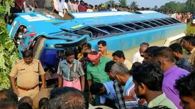 തൃശ്ശൂർ :തൃശൂർ കണിമംഗലം പാടത്ത് സ്വകാര്യ ബസ് മറിഞ്ഞു.30ലേറെ പേർക്ക് പരിക്ക്.50പേർ ബസിൽ ഉണ്ടായിരുന്നു. രാവിലെയായതിനാൽ സ്കൂളിലെയും, കോളേജിലേയും വിദ്യാർത്ഥികൾ ഉണ്ടായിരുന്നു. പരിക്കേറ്റവരെ ആശുപത്രിയിൽ പ്രവേശിപ്പിച്ചു. ആശങ്കവേണ്ടെന്ന് മന്ത്രി രാജൻ പറഞ്ഞു.