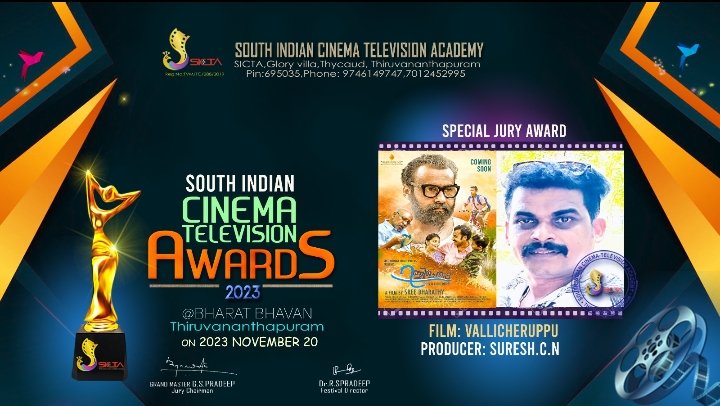 സൗത്ത് ഇന്ത്യൻ ടെലിവിഷൻ – ഫിലിം അക്കാദമിയുടെ ചലച്ചിത്ര അവാർഡുകൾ പ്രഖ്യാപിച്ചു. റീൽ എന്ന തമിഴ് സിനിമയിലൂടെ ശ്രദ്ധേയനായ ബിജോയ് കണ്ണൂർ ആദ്യമായി മലയാളത്തിൽ നായകനായെത്തിയ വള്ളിച്ചെരുപ്പിന് സ്പെഷ്യൽ ജൂറി പുരസ്കാരം ലഭിച്ചു.