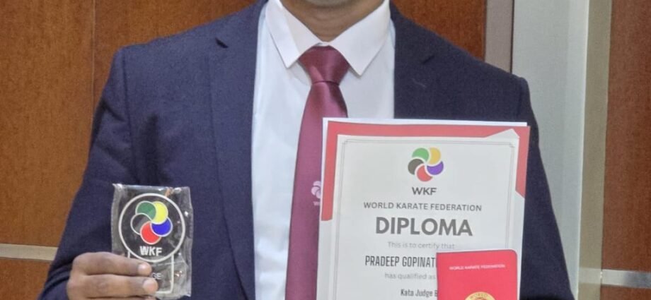 തിരുവനന്തപുരം : ഫെബ്രുവരി 6 മുതൽ 15 വരെ ദുബായ് ഫുജൈറയിൽ നടക്കുന്ന ലോക യൂത്ത് ലീഗ് കരാട്ടെ ചാമ്പ്യൻഷിപ്പിൽ പൂജപ്പുര പുന്നക്കാമുകൾ സ്വദേശി ജി കെ പ്രദീപിനെ വേൾഡ് കരാട്ടെ റെഫ്റിയായി തെരഞ്ഞെടുത്തു . ലോക കരാട്ടെ മത്സരങ്ങൾ ഇനി നിയന്ത്രിക്കുന്നത് ക്യോഷി ജി കെ പ്രദീപ് അയിരിക്കും .